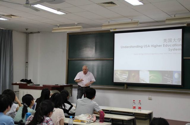 2013年5月14日下午3时,来自美国新泽西州Seton Hall University的高等教育专家Joseph Stetar教授应北理工管理与经济学院邀请,来到开云kaiyun官网良乡校区,以“US Higher Education in the Eyes of an American Scholar: Something Chinese agencies may never have told you”为题,与经管专业低年级本科生分享了他眼中的美国高等教育。此次讲座旨在帮助准备出国留学深造的同学,更真实、更直观的了解美国大学教育情况,展现给学生一个国内留学中介从未告诉过他们的世界,为学子们的出国求学之路奠定了更为牢固的基石,在实现学子们的个人理想追求的道路上迈出一大步。