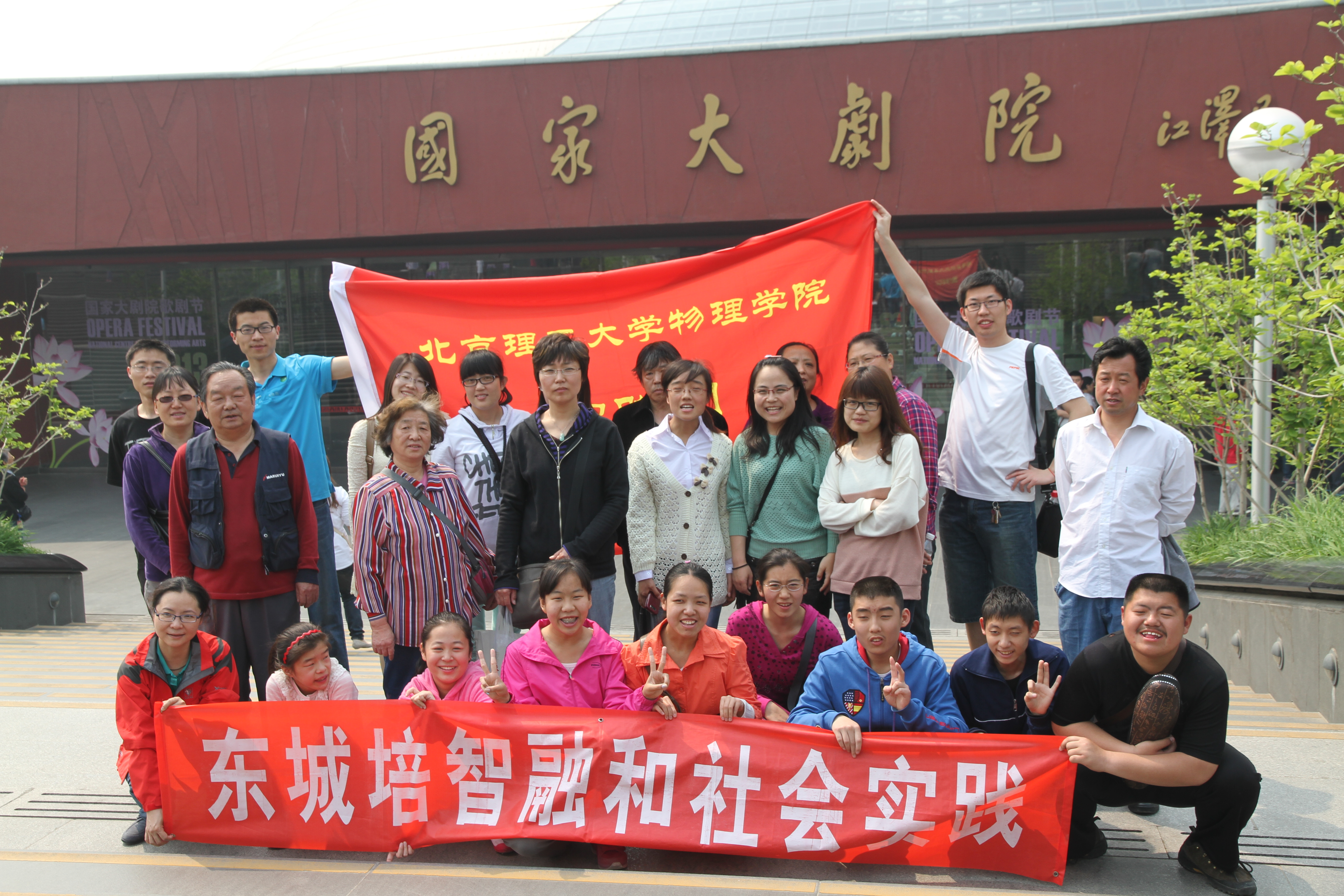2013年5月5日,爱心传递系列活动之——“音乐拉近你和我”在国家大剧院顺利举行。物理学院合唱团的同学们邀请培智学校葫芦丝班的师生一同观看《悠悠乐音话胡琴》音乐讲座和试听会。合唱团的同学们带着智障学生走出校门,接触社会、融入社会;他们也从刚开始不知如何与智障群体交往而锻炼的更加轻松和自如。通过音乐拉近你我的了解,增进彼此的感情。