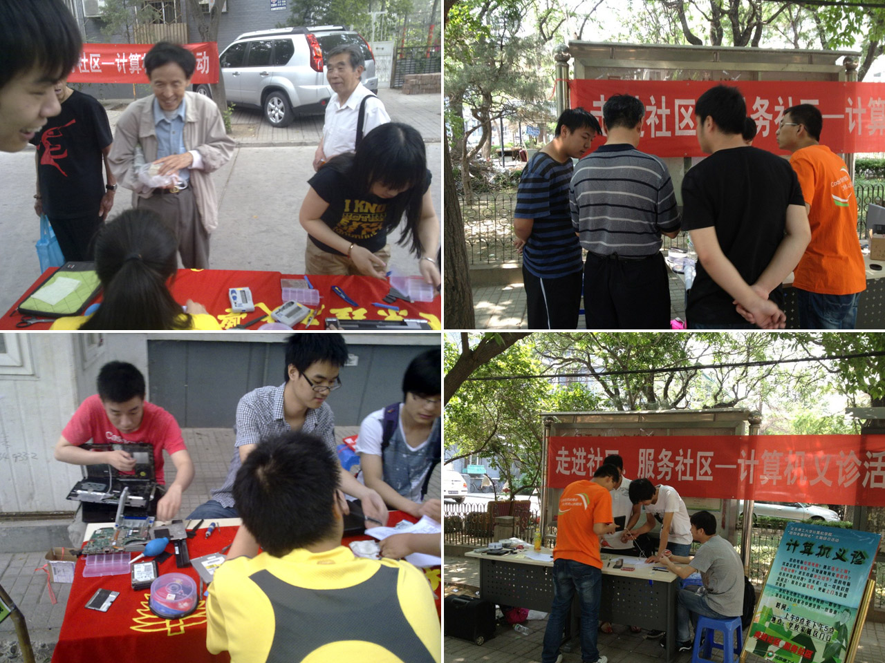 6支部和7支部的同学们分别于5月25日和5月26日在开云kaiyun官网生活区为社区居民提供电脑义诊服务。活动时间从上午9一直到下午5,期间同学们为居民解决了电脑散热,重装系统,开机启动,网络不畅等一系列问题,并为部分居民提供了上门服务。两天之内,同学们共维修维护电脑40余台,上门服务20余次。义诊活动是同学们利用自己所学,结合社会实践,服务社会,践行"中国梦"的有效途径,深深吸引了同学们投入其中。