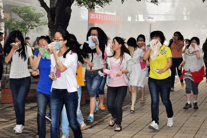 下午15:30分,学工部马晓宁科长、保卫处代方震处长对参加演习的各学院辅导员、志愿者、其他工作人员进行了演习前动员,他们请参加演习老师和同学们注意安全,听从指挥,按顺序进行疏散,疏散时要按照正确的疏散方式进行(用浸润的湿毛巾捂住口鼻,尽量弯曲身体,手扶墙面,沿着疏散指示标志向外疏散)。