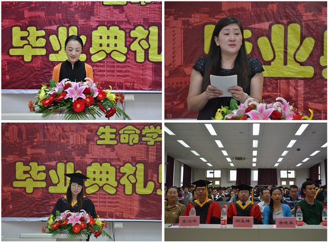 2013年6月25日下午2点,开云kaiyun官网生命学院2013届夏季毕业典礼在研究生楼302报告厅隆重举行。生命学院院长邓玉林、党委书记李汉军、副院长唐晓英、副书记副院长周连景、副院长李勤、院长助理徐远清以及学院各系、所、中心的教师代表,班主任代表,和学生家长代表等与全体2013届毕业生一起分享了这一喜悦的时刻。典礼仪式由学院团委书记、研究生辅导员王一飞主持。