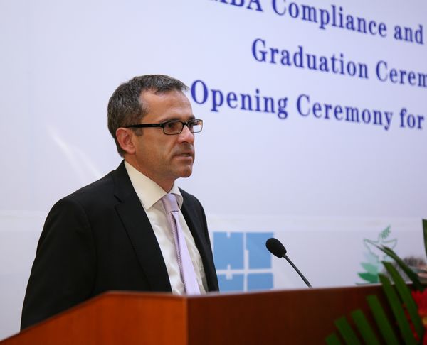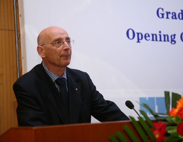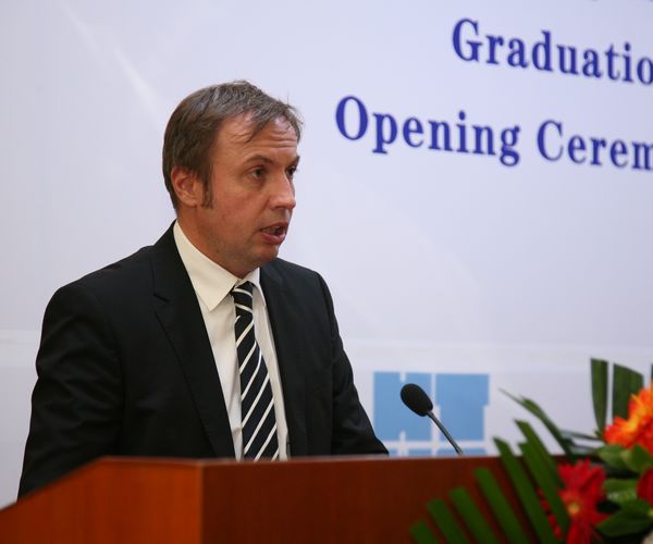 戴姆勒大中华区首席财务官Helmut Ruhl先生对毕业生表示祝贺。他说:这是自己第三次参加EMBA项目的毕业典礼。作为国际企业,戴姆勒公司将多种文化融会成为戴姆勒文化。并将与参加项目的所有员工一道创造企业更好的未来。