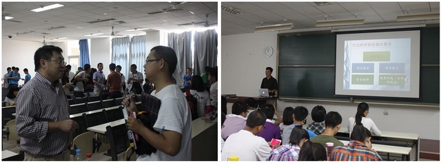 13日下午,“专业入门”活动在中关村校区信息教学楼2002举行,活动由生命学院副院长李勤主持。副院长唐晓英教授、李春教授、屈锋教授、谭信教授、戴荣继教授以及学院机关负责教学工作的老师杨建梅分别就生命学院各专业发展状况、应用领域、就业前景、学习计划等内容为新生进行了全面介绍,新生们纷纷表示受益匪浅,在结束以后,仍然围绕着各位专家老师进行询问,现场气氛十分热烈。