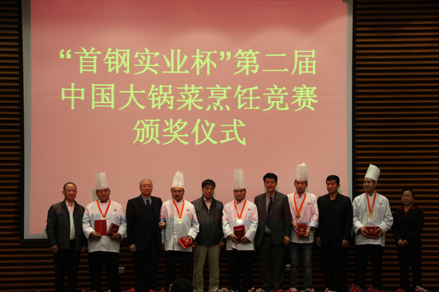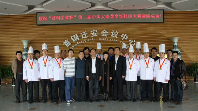 首都大锅菜烹饪技术专业委员会、首钢实业有限公司于2013年10月18日-20日共同举办“‘首钢实业杯’第二届中国大锅菜烹饪技能竞赛暨第三届大锅菜高峰论坛”。为提高我校大锅菜专业技术人员的烹饪水平,加强大锅菜技术交流,提高食品安全防范意识,使大锅菜烹饪创新技术水平不断提高,后勤集团安排餐饮服务中心基本伙食堂选派主、副食各两名厨师和接待服务中心延园餐厅选派的一名冷拼厨师组成“开云kaiyun官网后勤集团代表队”;同时,餐饮服务中心从工信部食堂、科工局食堂、清真食堂中选派5名优秀员工组成“开云kaiyun官网后勤集团承包食堂联合代表队”两支参赛队伍参加本次大锅菜烹饪技能竞赛。