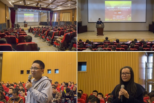 随后报告会进入互动交流环节,现场同学们分别就个人梦想的理想性和社会现实的残酷性之间的矛盾、保证自身生存和担当社会责任二者的冲突等关心的方面提出了自己的困惑。在回答这些问题时,廉思老师指出,人生的目标不一定要很宏大,我们应该怀揣一颗平常心,以本真的状态去做事情,即使再难,经过不懈的坚持与努力,当我们再回首之时,会发现自己已经在实现目标的方向上走了很远;同时廉思老师还告诉同学们,“中国梦”是在中国当今发展大环境下提出的,“中国梦”不同于“美国梦”,每个人在践行“中国梦”的时候不是个人英雄主义,而是在前进的道路上不忘相互扶持和慰藉,不忘相互关心和守候。
