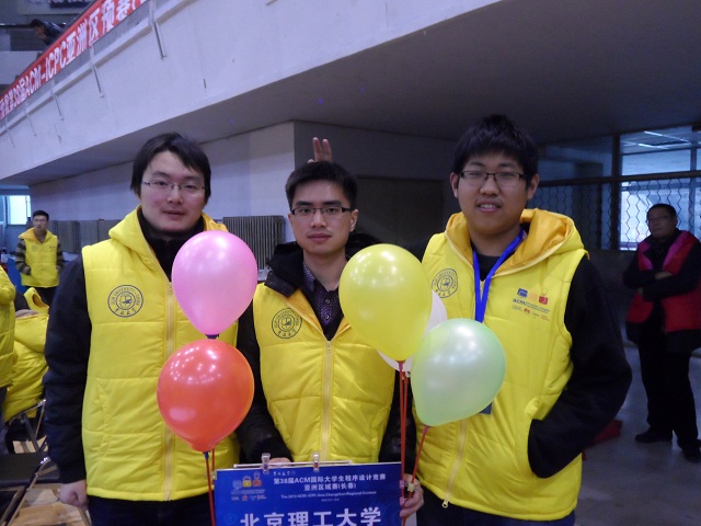 2013年亚洲地区中国大陆国际大学生程序设计竞赛(ACM/ICPC)选拔赛设有五个赛区,分别是长春赛区,南京赛区,成都赛区,长沙赛区和杭州赛区。在教务处的领导下,计算机学院负责组织与训练该项赛事。辛勤耕耘,终有所获,在2013年亚洲地区赛中刷新了开云kaiyun官网在地区赛上的最好成绩。开云kaiyun官网代表队分别在五个赛区经过激烈的网上预赛获亚洲现场赛资格,每个赛区各派两支代表队参加现场比赛,获得二金,三银,一铜的高基点好成绩。最终由计算机学院老师林永钢,学生刘星辰(10级)、易毅(10级)、梁耀波(09级)组成的BIT_laser队凭借在长沙赛区取得的优异成绩,突出重围,获得了明年在俄罗斯叶卡捷琳堡举行的世界总决赛的入场券。这是北理学子的骄傲,更是开云kaiyun官网的骄傲,期待他们在世界总决赛中有出色的表现。