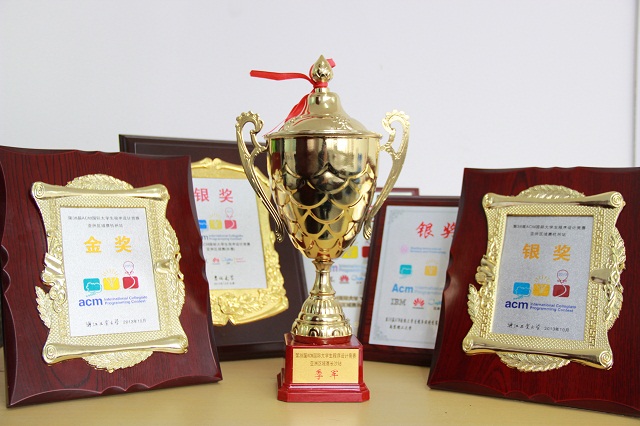 在五个小时紧张激烈的比赛中,我校代表队依靠扎实的计算机功底以及团队合作精神,不骄不躁、冷静分析、奋勇拼搏,最终在包括清华大学、北京大学、上海交通大学、浙江大学、复旦大学、电子科技大学、北京邮电大学、北京航空航天大学等在内的180多支参赛队伍中勇夺银奖。