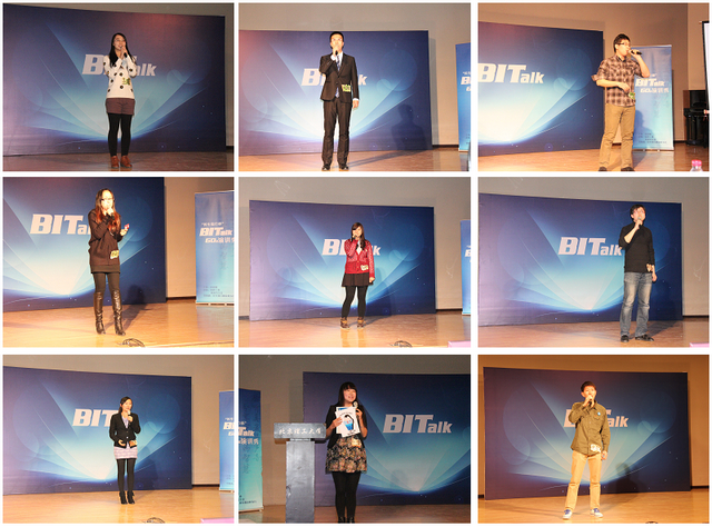现代化的工作、生活和学习节奏让大家不由自主地加快了思考和表达的速度,如何在转瞬即逝的机会里清晰、完整地表述观点、让自己的言语更有力量已经成为一项重要的能力。“BITalk 60s演讲秀”提供了一个学习、实践、进步的机会,让我校学生能够在这样一个轻松、自由的氛围中尽情展现自我,真诚分享。该活动将在2014年每月举办一期,并将在适当的时候举办良乡校区专场和外语专场,希望广大在校同学积极参与。
