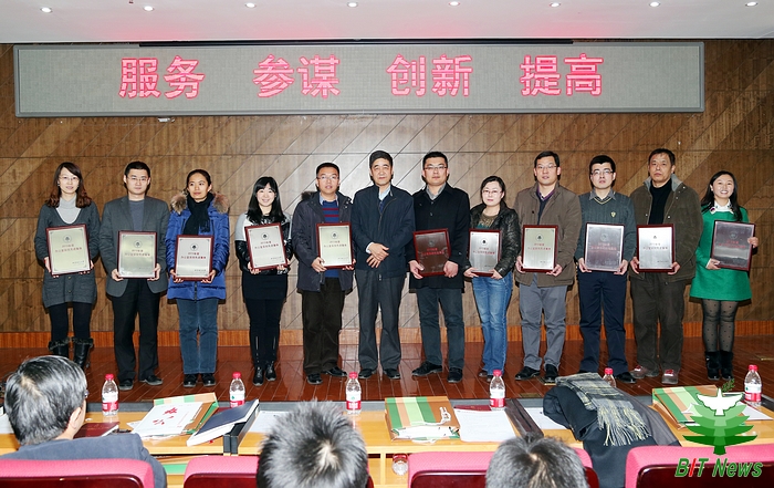 赵平副校长、赵显利副校长分别为获奖的10个优秀课题组、11个先进集体、20位先进个人颁奖。优秀课题组代表、校友会办公室余海滨,先进集体代表、基础教育学院办公室主任杨艳波,先进个人代表、机械与车辆学院办公室主任鄂嵋,分别结合岗位工作,与在场的办公室系统同志们分享了研究成果、工作体会和经验。