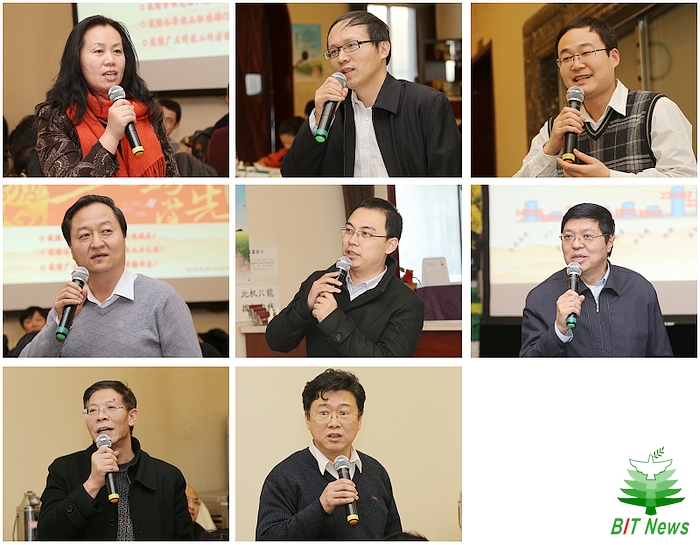 机械与车辆学院胡纪滨教授、王西彬教授,信息学院安建平教授、吴嗣亮教授,机电学院焦清介教授、光电学院薛唯教授、自动化学院王军政教授、化学学院曲良体教授等在自由发言阶段发言,为学校科研工作、学科发展等建言献策。