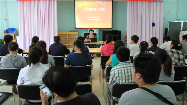为进一步加强对入党积极分子的思想理论修养和先进性教育,端正大家的入党动机,明确党员责任与义务,2015年7月2日下午,后勤集团党委在幼教中心多功能厅举办了入党积极分子党课培训。集团党委副书记姜金凤担任主讲,各部、各中心入党积极分子共44人参加了本次培训。