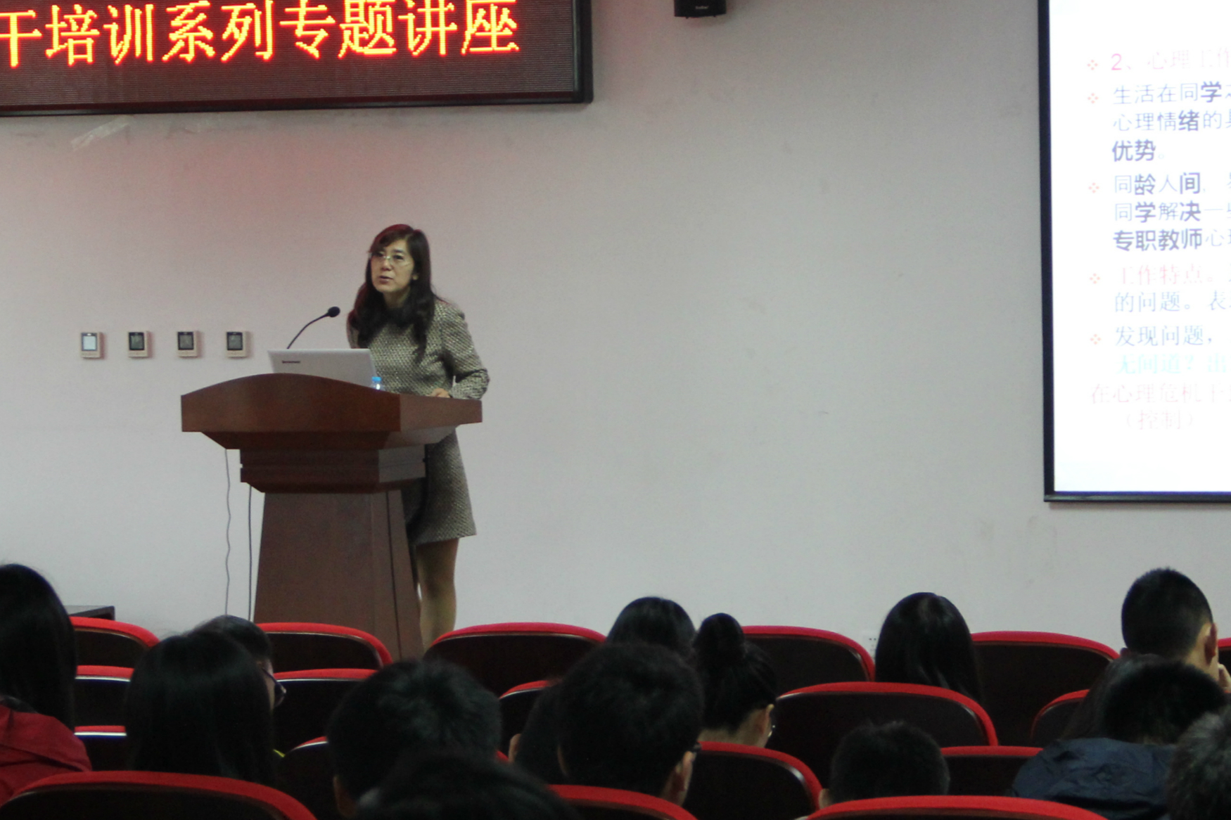 汪明春老师为与会同学带来题为《关爱生命心灵的天使》专题讲座。她从大学生常见的心理健康问题出发,结合实例,强调了心理危机预防和干预的重要性,分析心理骨干制度的工作特色与优势所在;随后,汪老师介绍了大学生常见心理问题的鉴别与诊断,并提出心理危机处理的基本方法;最后,汪老师号召党员骨干积极发挥能动性,关注身边同学的心理健康状况,及时发现问题并协助解决问题,健康、阳光生活。