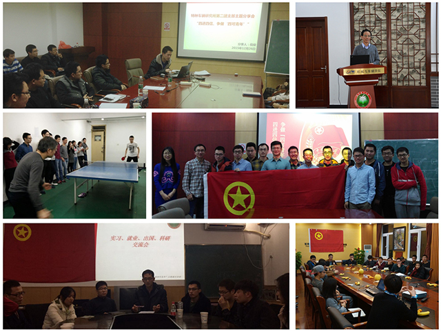 研究生各团支部结合自身的学习和体会,多以报告会、交流会与学习会等形式开展主题团日活动。其中电动车辆实验室邀请到孙逢春副校长以及往届的榜样师兄进行“四可青年”解读,积极营造实验室“争做四可青年”的氛围。发动机研究所团支部根据自身的科研需求,邀请刘福水教授给研究生们进行了SCI文章的分析和指导,并以一位博士师兄的文章为例,进行实例说明和讲解。同时,由于就业形势的严峻,邀请已毕业的师兄、师姐来现场,现身说法,进行就业方面的相关交流和经验分享。交流活动对在读研究生,尤其是研究生新生来说效果显著,引导同学们从懵懂到清晰,结合自身情况,明确思路早做准备,在找工作过程中有的放矢。