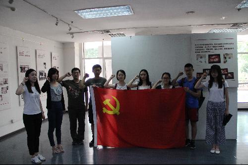最后,机关党支部书记杨慧磊带领新加入党组织的教工及学生党员在鲜红的党旗下重温了入党誓词。