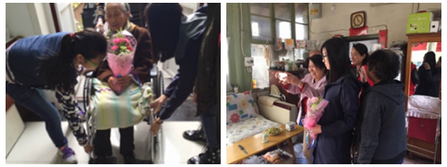 献花活动后,学生党员分别同社区管理员一起到行动不便、不能前往活动的老党员家中慰问看望。学生党员关切地询问了老人的身体健康情况和家庭情况,转达了学院党委的问候。