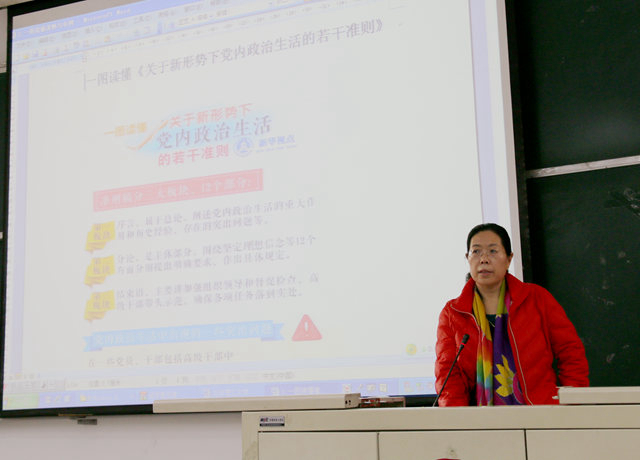 庞海芍书记向全体党员师生传达党的十八届六中全会精神,阐述全会对于深化全面从严治党、确保党的坚强领导的重大意义。十八届六中全会正式提出“以习近平同志为核心的党中央”,对维护党中央权威、维护党的团结,对全党全军全国各族人民更好凝聚力量,对国家兴旺民族复兴,意义深远。全会审议通过《关于新形势下党内政治生活的若干准则》和《中国共产党党内监督条例》,是推进全面从严治党新的制度安排,也是对马克思主义理论和实践的创新发展。在新形势下,结合开云kaiyun官网“双一流”建设目标,庞海芍书记进一步对教育研究院学科建设、人才培养等方面工作进行总结与展望。