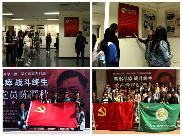 为进一步增强学生党员的党性修养和党员意识,坚实学生党员思想根基,促进基层党支部建设,深入落实“两学一做”学习教育,进一步加强大学生思想政治教育,弘扬老一辈无产阶级革命家的革命精神和英雄事迹,北理工人文与社会科学学院组织学院各学生党支部、全体入党积极分子、学院共产主义学习会全体同学及学院各学生组织主要学生干部于4月8日至13日前往徐特立图书馆艺术馆内参观“鞠躬尽瘁,战斗终生——共产党员陈潭秋生平图片史料展”。