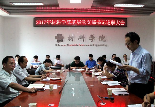 为进一步深入学习贯彻习总书记系列重要讲话精神,落实全面从严治党,加强党的基层组织建设的重要指示精神,充分发挥基层党组织战斗堡垒作用,2017年6月12日下午,北理工材料学院党委在五号教学楼502-1会议室召开了党支部书记述职评议考核会议。