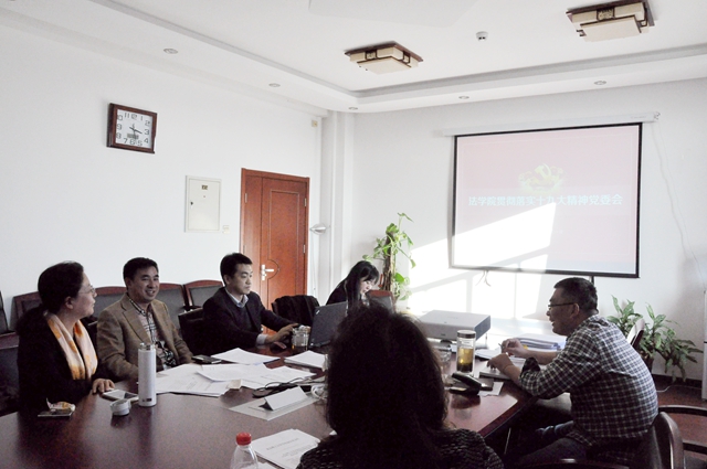 11月2日下午,法学院贯彻落实十九大精神党委会,在中心教学楼1429会议室召开。会议由党委书记杨海主持。