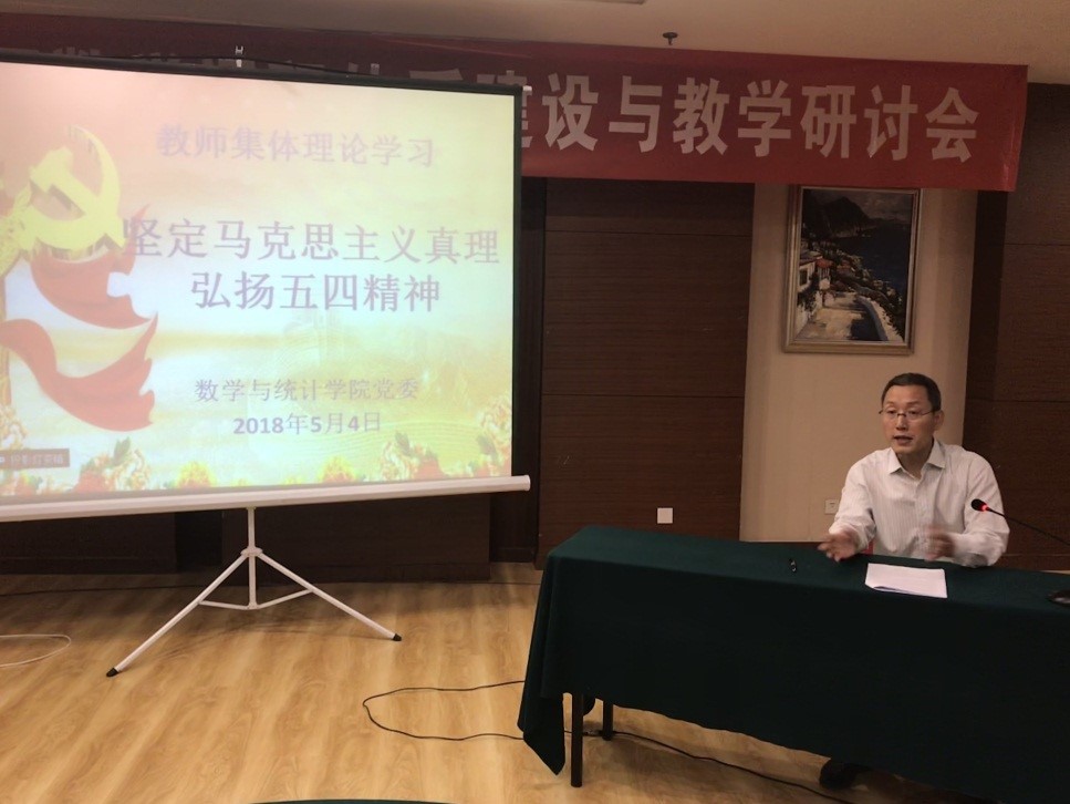 数学与统计学院党委“坚定马克思主义真理,弘扬五四精神”教师集体理论学习在轻松愉快的氛围中顺利结束。