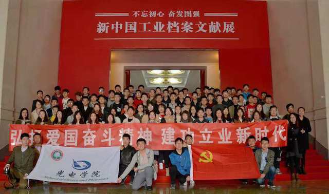 2018年10月21日上午,光电学院开展“弘扬爱国奋斗精神、建功立业新时代”主题参观活动,学院副书记、副院长盛筠带队,部分老师和学生党员一同前往民族文化宫,参观学习“不忘初心 奋发图强”新中国工业档案文献展。