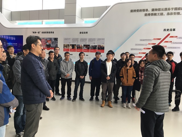 为学习贯彻全国高校思想政治工作会议精神,帮助师生正确认识时代责任与历史使命,坚定落实以党建带团建,团结带领广大团员青年听党话,跟党走,进一步深化开展我院“担复兴大任,做时代新人”“弘扬爱国奋斗精神,建功立业新时代”主题教育活动。11月15日下午,计算机学院组织教工党支部、学生党、团支部赴中国空间技术研究院调研参观。中国空间技术研究院508所副所长李潞东,中国空间技术研究院人力资源部计划调配处副处长刘皓玉,总体部人力资源处副处长安亮,通信卫星事业部人力资源处副处长宋达陪同师生们进行参观并为大家进行讲解。计算机学院党委副书记、副院长奚英伦,教工第五党支部、2017级研究生第1党支部、团支部和2016级本科生物联网团支部参加了本次活动。