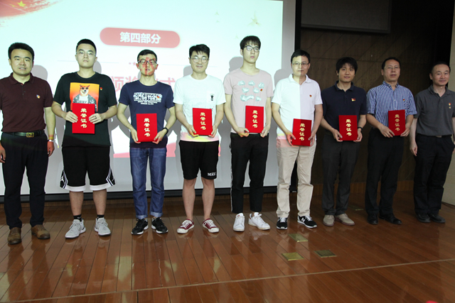 左正兴代表学院党委,向受表彰的先进集体和先进个人表示祝贺,并对大家的辛勤奉献表示衷心的感谢和崇高的敬意。他讲到,近年来,学院在人才培养、科学研究、队伍建设等多个方面取得了不错的成绩。学院党委深入贯彻落实习近平新时代中国特色社会主义思想和党的十九大精神,以政治建设统领党的建设工作各项任务,坚持抓好党建,不断深化落实全面从严治党主体责任。左书记代表学院党委向全体党员提出三点要求:第一,要全面开展“不忘初心,牢记使命”主题教育,做到守初心、担使命、找差距,凝聚力量推动学院各项事业高质量发展。第二,教师党员要发挥带头作用,把立德树人作为根本任务。学生党员要争做全面发展的表率,在学习和生活中发挥模范带头作用。第三,不谋全局者,不足以谋一隅。学院要全面系统谋划,进一步围绕中心开展工作。科研团队要瞄准世界前沿的基础性科研、面向国家需求的科研,勇于担当科研使命,汇聚力量共谋发展。最后,他强调,学院党委将继续带领全体同志,不忘初心、牢记使命、凝心聚力、砥砺奋进,加快推进学校“双一流”建设,以优异成绩庆祝中国共产党成立98周年。