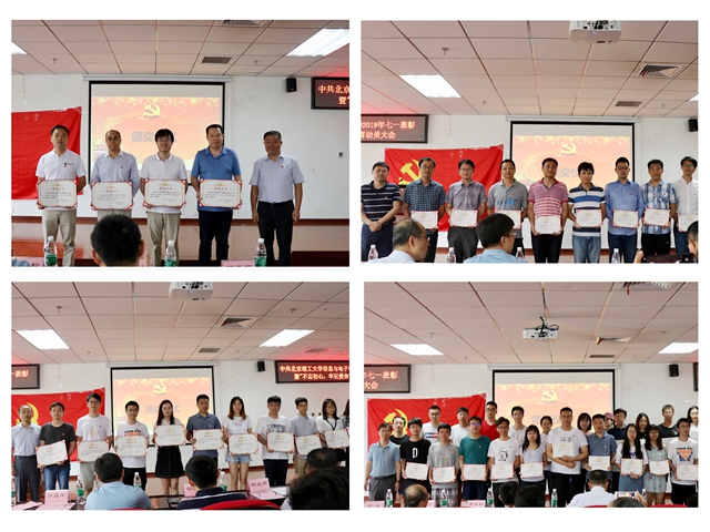 大会在庄严的国歌声拉开了帷幕。本次会议由徐建主持。孙厚军宣读《关于表彰信息与电子学院先进党支部、优秀共产党员的决定》,本次表彰共评选出院级先进党支部15个、优秀共产党员91名。学院党委书记薛正辉、副院长司黎明、党委委员费泽松为获奖的先进党支部、优秀党员代表颁奖。