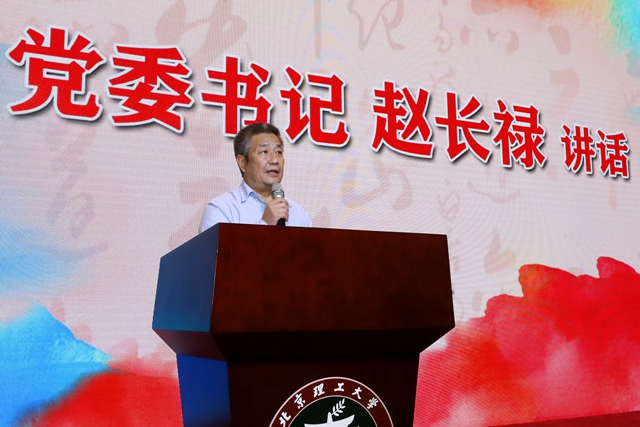 党委书记赵长禄讲到,在学校启动“不忘初心、牢记使命”主题教育之际,隆重举行庆祝第35个教师节暨表彰大会,他代表学校党委,向辛勤耕耘、默默奉献在工作一线的全校教师致以节日的问候!向为学校贡献了青春并一直关心和支持学校发展的离退休老教师表示亲切的慰问!向新加入北理工的教师表示热烈的欢迎!