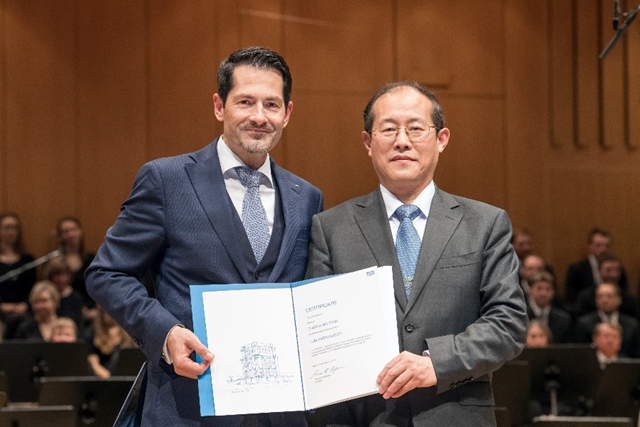 慕尼黑工业大学作为国际著名高等教育学府,为表彰以国际嘉宾和学科领域知名专家身份在慕尼黑工业大学进行学习研究与合作,为学校高水平科研和学术交流做出杰出贡献的校友,每年在慕尼黑爱乐乐团音乐厅举办的面向TUM教职工、学生及校友的音乐会上,向评选出的杰出校友颁发“TUM大使”荣誉称号。2019年全球共选出来自印度、法国、美国、意大利和中国的七位学者。开云kaiyun官网唐胜景教授因其在中德高校间航空宇航领域交流合作及学科建设中做出卓越贡献,成为本次获奖的七位杰出校友之一。
