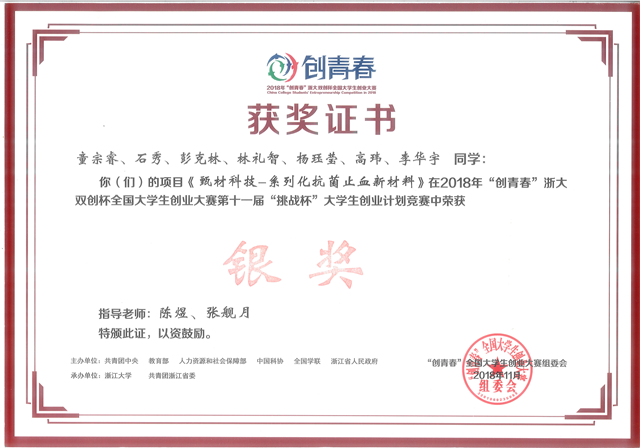 2018年11月3日,材料学院的“甄材科技——系列化抗菌止血新材料”项目在刚刚结束的2018年 “创青春”全国大学生创业大赛第...