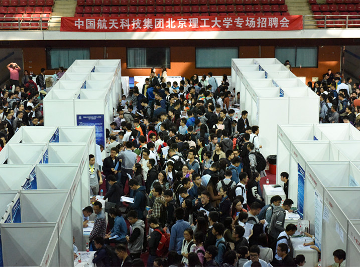 2016年9月27日,我校在体育馆主馆举办了“中国航天科技集团专场招聘会”。
