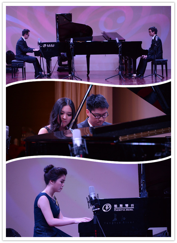 整场音乐会中,不仅有对经典作品的演绎,如钢琴协奏曲《柴可夫斯基第一钢琴协奏曲》、钢琴四手联弹《军队进行曲》《马刀舞曲》、钢琴独奏《玛捷帕》、手风琴六重奏《阿莱城的姑娘》、手风琴二重奏《光和影》、手风琴独奏《斗牛舞》;也有对经典电影作品中那些让大家耳熟能详的音乐片段的重现,如《不能说的秘密》中的斗琴、四手联弹;同时还有钢琴团酝酿半年之久、此次隆重推出的,由毕业于茱莉亚学院的美国跨界双钢琴演奏家Anderson和Roe改编的世界名曲:四手联弹《蓝色多瑙河》 、《练声曲》的首次登台亮相。这些风格多样的钢琴和手风琴演奏,带给建筑大学的老师和同学们耳目一新的感觉,台下的掌声经久不息。