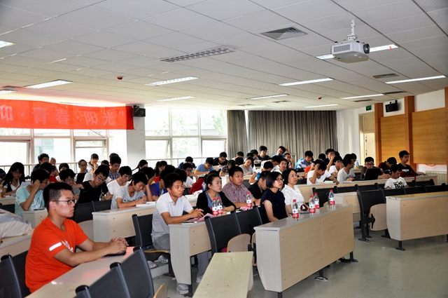 2014年5月27日下午,信息与电子二学部举办了以“保持阳光心态,践行绿色行动”为主题的“信仰•青春•阳光”主题教育讲座。活动邀请到了北京市环境保护宣传中心高级工程师祐素珍为同学们讲解环境保护与大学生健康成长等相关问题,北京市环境保护宣传中心宣传团队负责人张鹏、信息二部团总支书记张杨、全体专兼职团干部以及部分学生代表参加了本次活动。
