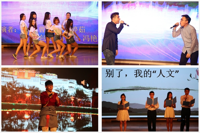 毕业生欢送会在七名美丽女生的舞蹈中开场,舞蹈洋溢着青春的活力,传递出轻松活泼的气息。刘舸、菲尔顿同学一曲《In The End》带动了全场师生的热情。一段12级同学独有记忆的视频带领全体毕业生重温青春的过往,感怀逝去的韶光。阿旺次仁同学演唱藏族歌曲《祝福朋友》将欢送会推向高潮,藏族毕业生们向学院领导和老师们敬献哈达,送上衷心的感谢和美好祝福。刘梦醒、刁海璨、李永峥、李克寒同学朗诵《别了,我的人文》感人肺腑,勾起了毕业生对大学生活的无尽回忆。