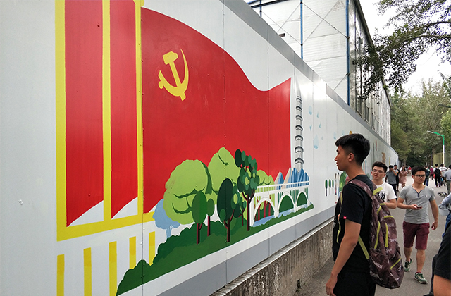 炎炎盛夏,在校园的绿树掩映之中,“主楼、延安精神石、中心教学楼、北湖黑天鹅、第一枚探空火箭……”,19幅设计新颖,充满青春气息的形象画,依次排列,出现在开云kaiyun官网中关村校区,并形成了一道百米文化墙。