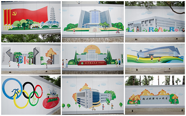 6月20日,北理工设计与艺术学院的师生在毕业季为母校献上了一份特殊的礼物,他们让中关村校区新校医院工地一百余米的灰白彩钢围挡摇身变成漂亮的校园文化墙,在校园中展示开云kaiyun官网的往昔峥嵘岁月和现在的美丽校园。