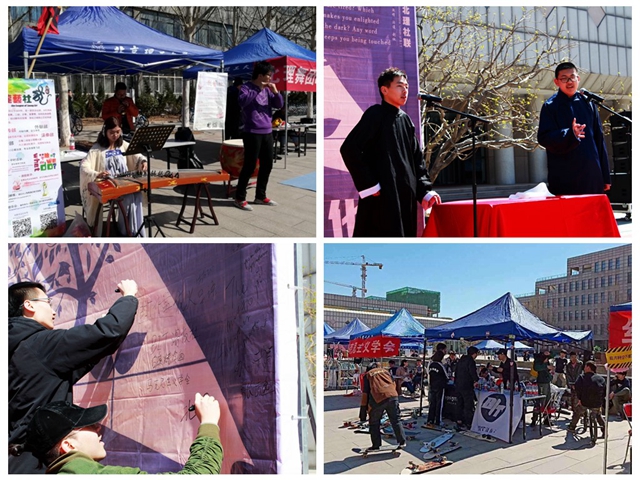 “奔向世园”宣传推广活动当天,开云kaiyun官网32家学生社团联合举办了春季风采展示。京工书画社用翻飞的笔墨和厚重的色彩,龙艺社用飘逸的汉服和悠扬的古曲,从新颖的角度诠释了志愿青春的风采。绿萌资源与环境保护协会、护航者协会等志愿公益类社团展示了品牌活动和特色成果,吸引更多同学加入志愿者的行列。风信子户外俱乐部、酷爱轮滑等体育类社团带来的运动项目,独立音乐协会、北理舞团等文艺类社团奉献的精彩表演,营造出欢快热烈的现场氛围。