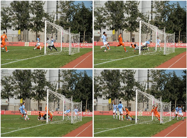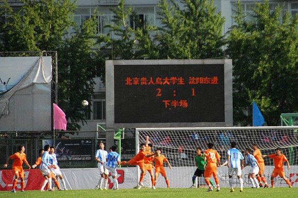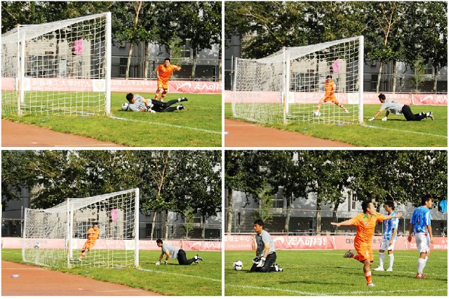 在上半场补时阶段,沈阳东进连续利用角球定位球等攻势向北理工腹地发动猛攻,但北理门将孙程却充分发挥了其身高力量优势,高接抵挡将力保本队城门不失。上半场北理工1比0领先沈阳东进。
