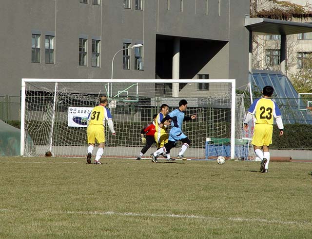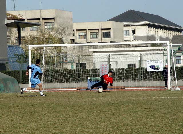 11月15日,首届高校教工“三洋投影机”杯足球邀请赛在北京大学五四运动场圆满结束,我校足球队在与中国人民大学争夺第三名的比赛中,全场以1:1打成平局,在最后的点球大战中,以1球惜败,最终以3:4的比分获得殿军。