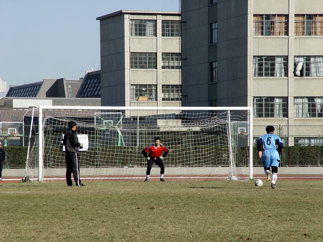 我校教工足球队在与对外经贸大学进行的半决赛中,也是在实力占优的情况下,全场以1:1战平,在点球决战中,同样以一球之差遗憾告负,最终以4:5的比分失去夺冠的机会。