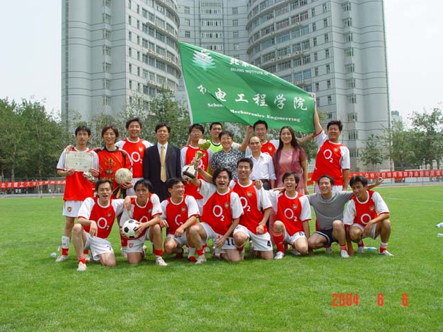 副书记、副校长杨宾老师亲临决赛现场并为决赛开球。机电工程学院粟萍副书记、材料科学与工程学院韩笑副书记分别带领着学院的啦啦队为学院队员加油助威,赛场上的精彩球技和啦啦队的欢呼声,引来了不少过路同学们的驻足观看,东操场成了周末校园欢乐热闹的一景。经过奋力拼搏,机电工程学院代表队以4:1一举夺得2004年共青杯研究生足球联赛冠军。材料科学与工程学院、机械与车辆工程学院分获联赛二、三名。同时,材料科学与工程学院郭炜同学在队友们的通力合作下,以自己精湛的球技继上届联赛,再次夺得“最佳射手”称号。