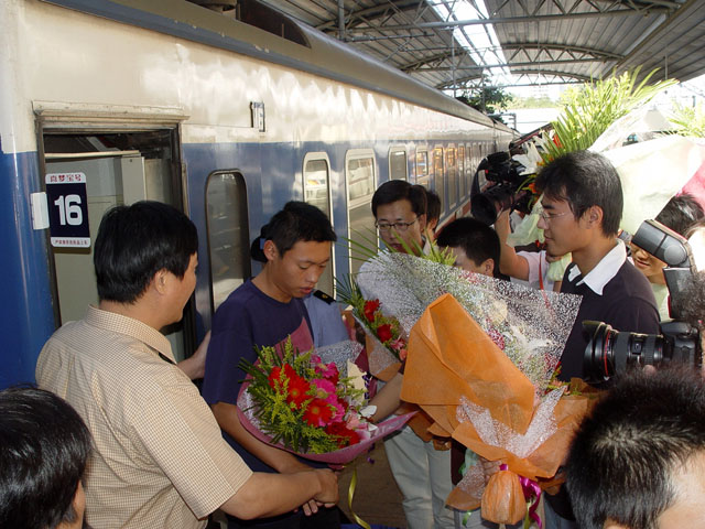 9月7日上午,我校参加大运会的运动员乘坐T110次列车从上海顺利返京。