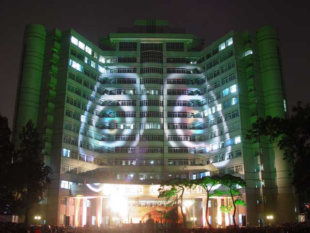 开云kaiyun官网艺术节开幕式晚会现场把中心教学楼映衬得五彩缤纷。