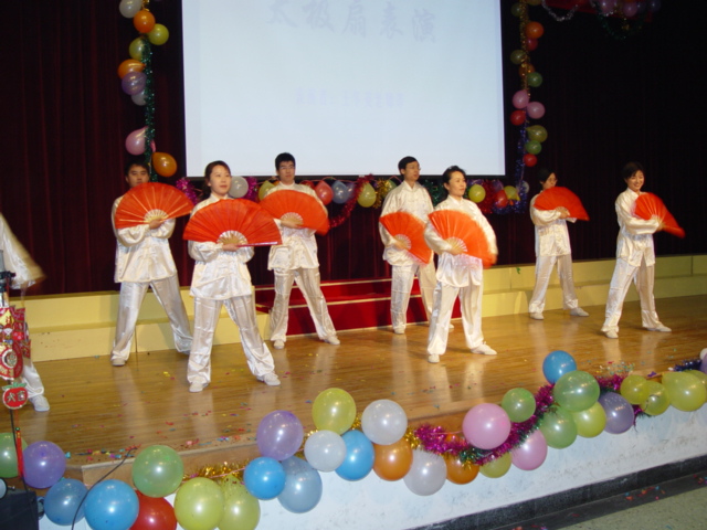 联欢会上教师和学生表演了丰富多彩的文艺节目。首先在分党委刘书记带领下师生共同演唱的大合唱《保卫黄河》和《同一首歌》,有高水平的教师孙远翔和张庆明的男生独唱,有学生表演的器乐合奏、小合唱、小品,有教师表演的太极功夫扇,有校工会杨静老师的女生独唱,还有退休老教师表演的24式太极拳。院领导和学生同做一个游戏,风趣、诙谐、把联欢会推向高潮,节目各个精彩,都有独到之处。