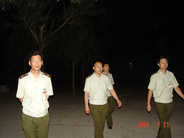 7月21日凌晨,军训总指挥刘明奇、副总指挥张振华等带队查岗。