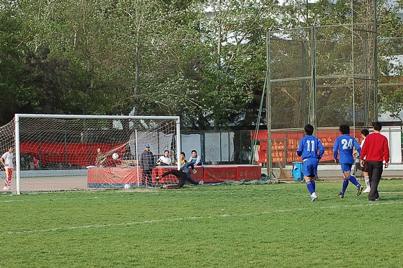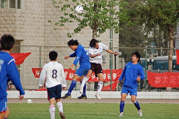 4月24日下午,为迎接即将开战的全国足球乙级联赛,我校足球队(白衣)与安徽九方足球队(蓝衣)进行了一次热身赛。我校足球队作为飞利普全国大学生足球联赛的三联冠,今年5月开始将首次参加全国足球乙级联赛,这也是中国足球联赛中第一支完全由在校大学生组成的球队。而安徽九方足球队是去年全国乙级联赛的第四名,双方球队实力非常接近,虽然这两只队伍在第一阶段比赛中分属南北两个大组,但比赛还是吸引了众多师生员工前去观战。