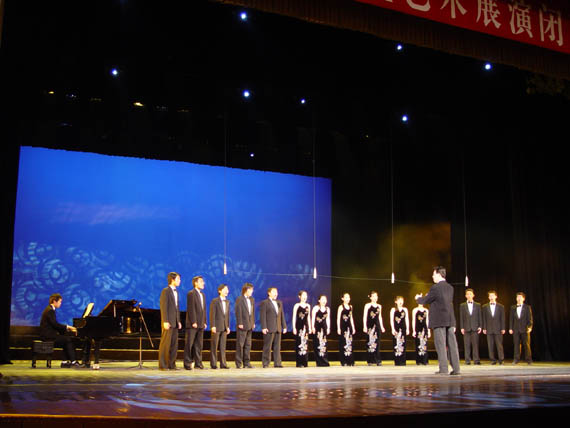 我校学生艺术团的小合唱《坚持梦想》打动了现场观众的心