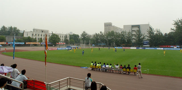 第五届飞利浦中国大学生足球联赛总决赛我校足球队的首场比赛5日在中国人民大学上演。主场作战的中国人民大学在下半场20分钟时曾凭借一个点球领先了一刻钟,但我校足球队顽强拼搏,在下半场依靠第35分钟7号李爽和40分钟3号姚远的连续入球反败为胜,取得了关键的首场比赛的胜利,目前小组积分名列第一。