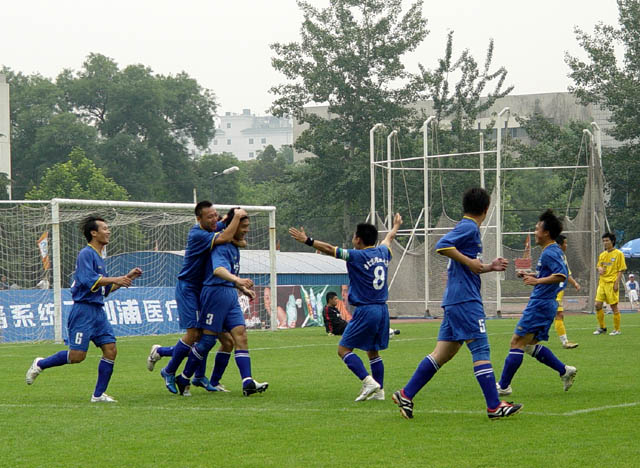 北理控制了大半场比赛,却被人大率先打进一球,这多少激起了队员们的斗志。全场比赛进行到第75分钟时,北理7号李爽带球杀入禁区,在三名对方防守队员的围堵之下起脚怒射,皮球飞入死角,1;1平。北理的攻势并未就此打住,进球之后不久,北理队员传中,人大球员抢得第一点后没有将球控制住,禁区内一片混乱,北理3号姚远在乱军之中抢得第二点打入制胜一球。此后人大试图进行反击,但几次进攻均没有成功。而北理也没有得到扩大比分的机会。92分种,裁判三声哨响,全场比赛结束。北理2:1取得首战的胜利。